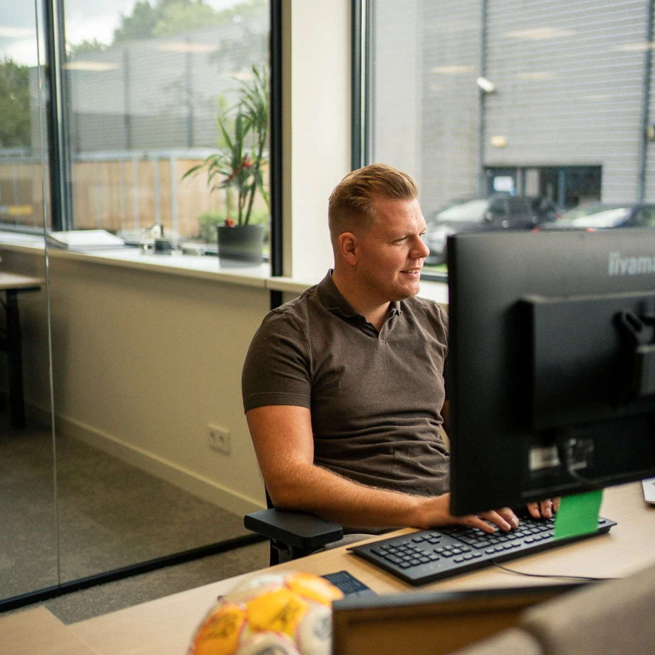 Van een tijdelijke vakantiebaan tot vaste kracht in de commerciële binnendienst: Berry Bruintjes is inmiddels niet meer weg te denken bij Eurosafe. Al ruim negen jaar werkt hij met plezier aan oplossingen voor veilig werken op hoogte. Eerst als calculator, daarna in projectcoördinatie, en nu als commercieel medewerker. Wat hem drijft? “De kick om werk binnen te halen en de overtuiging dat wat wij doen er echt toe doet.”